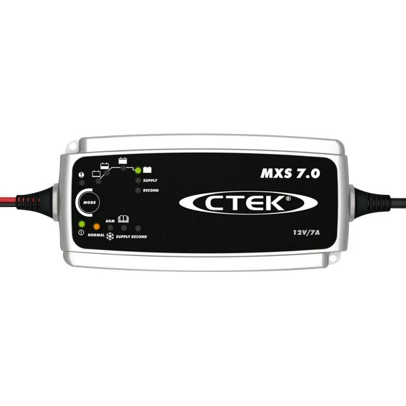 Le chargeur Ctek MXS 7.0 est destiné aux batteries de grande taille des véhicules de loisirs, des bateaux, des caravanes et des voitures. Il fonctionne de manière totalement automatique avec 8 étapes et fournit 7 A aux batteries 12 V de 14 à 150 Ah. Il assure la charge d’entretien jusqu’à 225 Ah. Il génère un diagnostic de votre batterie et permet de savoir si cette dernière est prête à recevoir et à conserver la charge. Il dispose également d’un mode Recond pour le reconditionnement des batteries profondément déchargées ainsi que d’un programme « Flocon de neige » pour la charge lorsqu’il fait froid. Il dispose aussi d’une option AGM et peut aussi être utilisé comme source d’alimentation des équipements 12 V jusqu’à 7 A.