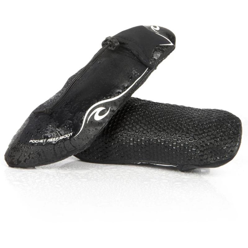 Avec leur épaisseur d’1 mm, les chaussons Rip Curl Pocket Reef sont un accessoire très pratique pour entrer et sortir du récif. Pliables, ils se rangent facilement dans la poche.