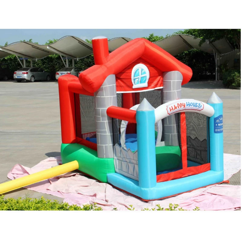 30 balles sont incluses pour amuser vos enfants. Ce château en Nylon et PVC est très résistant. Un sac de rangement et un souffleur sont inclus.