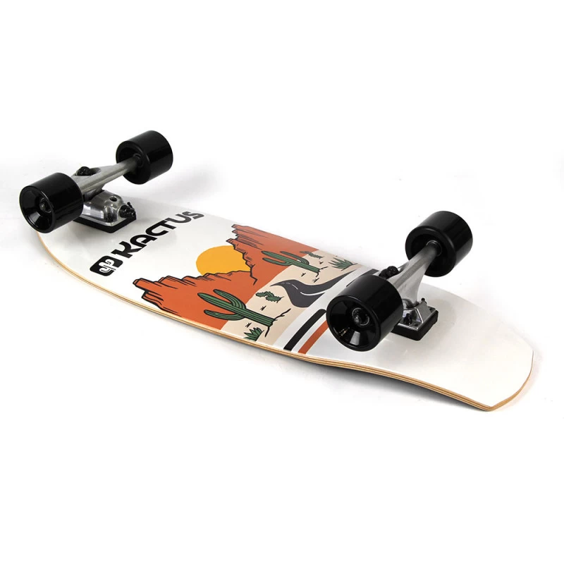Le surfskate desert hill 30 de la marque Kactus est équipé d’un truck à ressort, ce qui permet de reproduire les sensations de surf sur une vague, sur terre. L’avantage principal du ressort est de générer un maximum de vitesse. En effet, grâce à ce truck, pas besoin de pousser, il suffit de pomper pour avancer. Le surfskate Kactus offre une fluidité de glisse, une réactivité dans les courbes et une importante maniabilité.