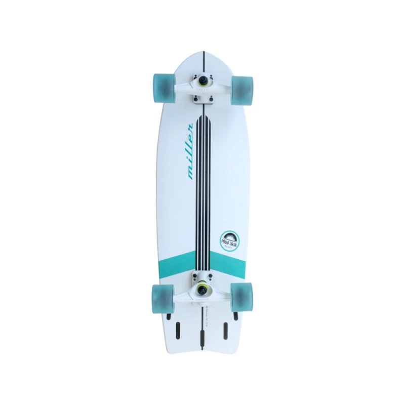 Le skate Miller Division Pablo Solar 32.5 est un modèle conçu par le rider Pablo Solar qui lui a donné son nom. C’est un surfskate idéalement conçu pour s’entraîner à booster son ride même hors de l’eau et développer ses acquis en surf sur un skate quand une session sur l’eau n’est pas possible.