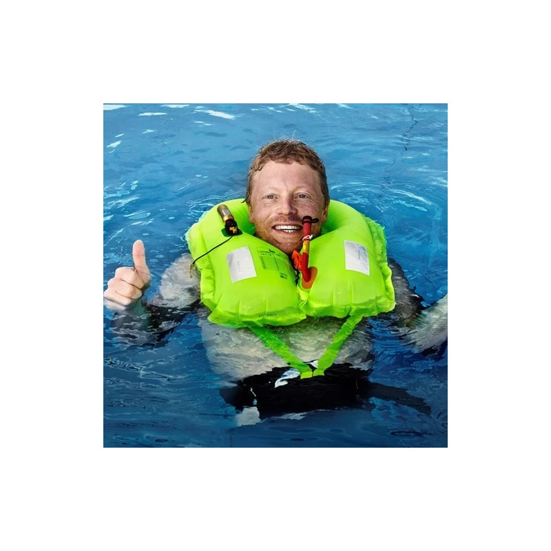 Le système de sauvetage Secumar Free 100 a été développé pour tous les pratiquants de sports de glisse nautique ou pour ceux qui nagent régulièrement. Portée à la ceinture, cette poche renferme une enveloppe gonflable minutieusement pliée. Elle ne gêne pas lors de la nage ou du sport pratiqué. En cas de situation d’urgence, il suffit de sortir l’enveloppe gonflable hors de la poche au-devant du torse et de l’enfiler ensuite facilement par-dessus la tête. La cartouche de CO2 est activée par déclenchement manuel et permet de gonfler rapidement l‘enveloppe gonflable. La flottabilité générée permet de stabiliser la personne en difficulté, sa tête maintenue au-dessus de la surface l’eau. Le Secumar Free 100 est un excellent système de sauvetage pour les activités de nages en eau libre et pour les sports de glisse nautique.